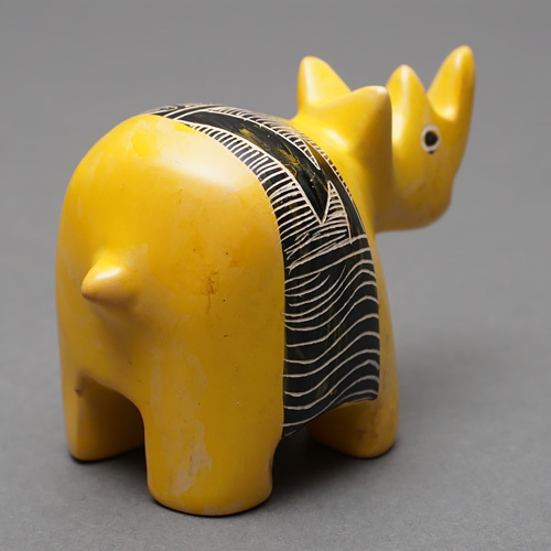 柔らかく加工しやすい石を削って作られた丸りとしたサイの置物です。