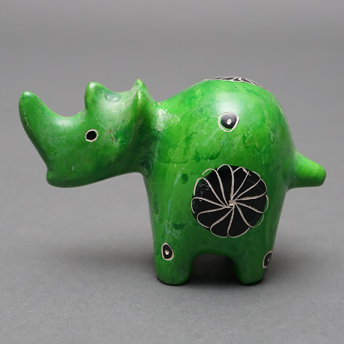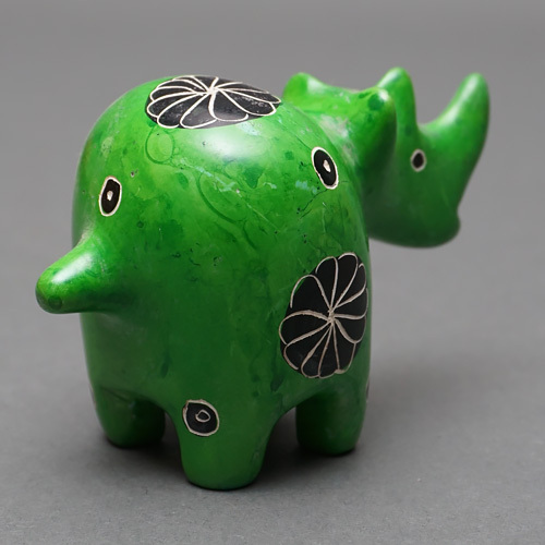 柔らかく加工しやすい石を削って作られた丸りとしたサイの置物です。