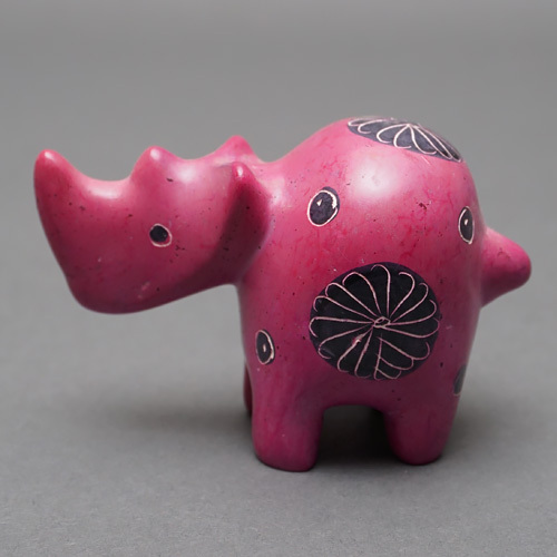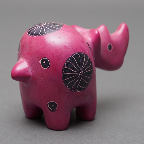 柔らかく加工しやすい石を削って作られた丸りとしたサイの置物です。