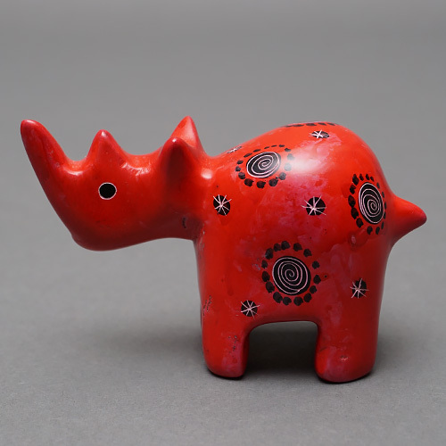 柔らかく加工しやすい石を削って作られた丸りとしたサイの置物です。