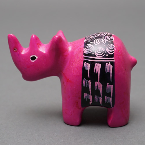 柔らかく加工しやすい石を削って作られた丸りとしたサイの置物です。