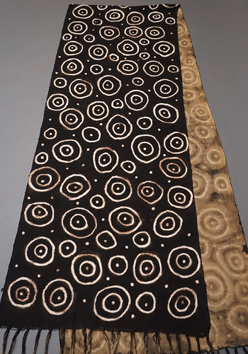 大地の色合いを生かした泥染めならではのブラックとホワイトのトーンが、独特の深みと温かみを演出します。