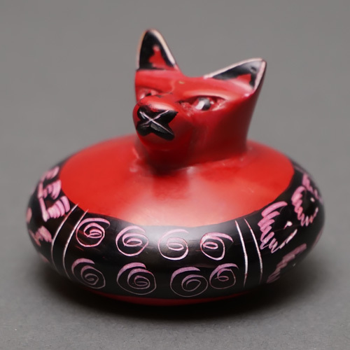 ケニアの職人が手作業で仕上げた、ソープストーン製のだるま型の猫の置物です。