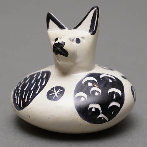 ケニアの職人が手作業で仕上げた、ソープストーン製のだるま型の猫の置物です。