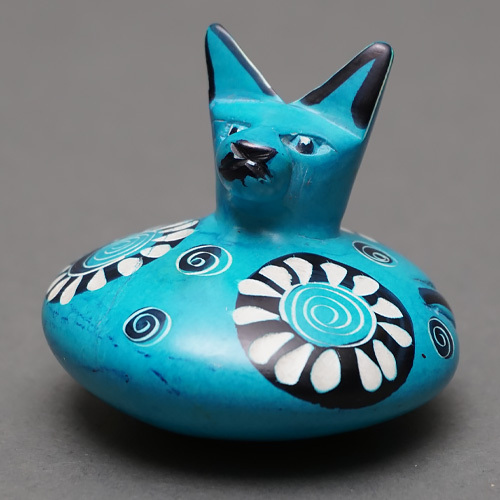 ケニアの職人が手作業で仕上げた、ソープストーン製のだるま型の猫の置物です。