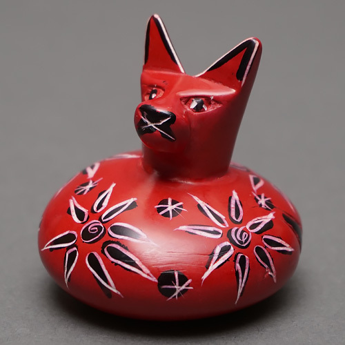 ケニアの職人が手作業で仕上げた、ソープストーン製のだるま型の猫の置物です。
