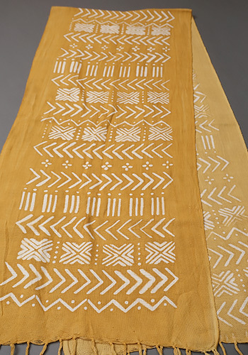 大地の色合いを生かした泥染めならではのブラックとホワイトのトーンが、独特の深みと温かみを演出します。