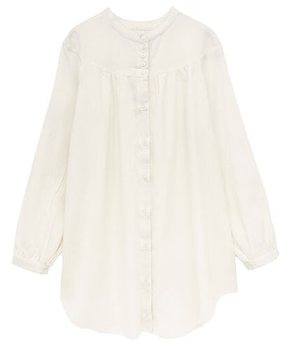 襟元の密についたボタンが程よいアクセントとなり、一枚で存在感のあるブラウスです。
