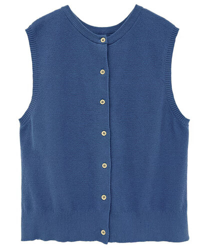 かのこ編み再生ポリエステルニット2wayベスト (ブルー)