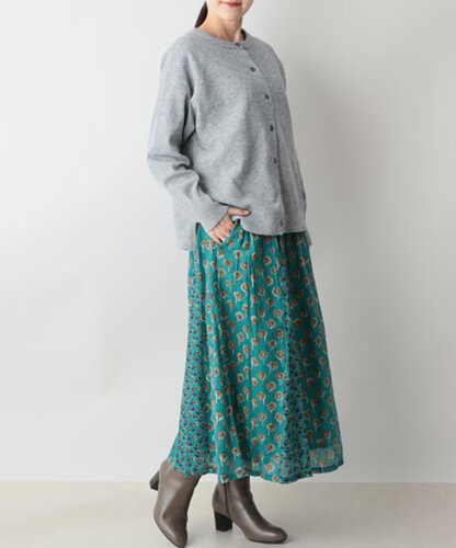 カーディガンは、前後どちらを前にしても着られる2WAY仕様。