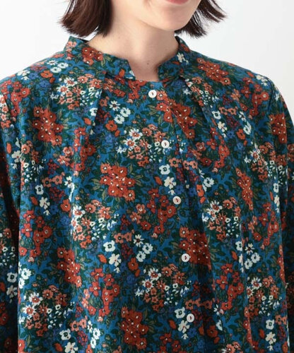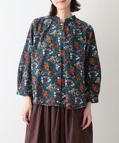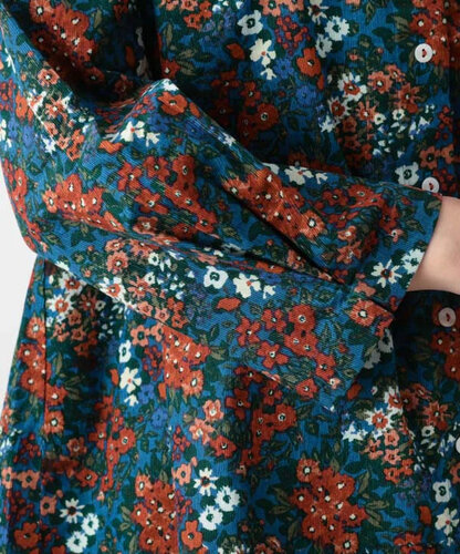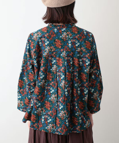 ブーケプリントコットンコーデュロイブラウス (ブルー)