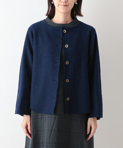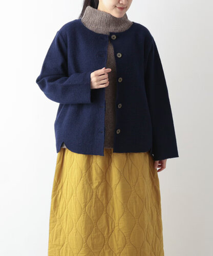 ウール100%の縮絨ニットが今季リニューアル。 編み目の度目を少し甘めにし、縮絨加工でやさしく仕上げた素材は、軽さと温もりを兼ね備えています。