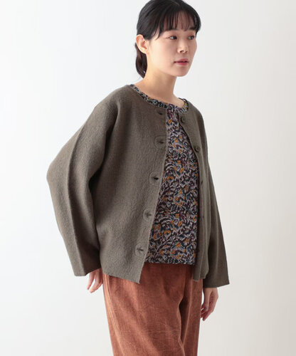 ウール100%の縮絨ニットが今季リニューアル。 編み目の度目を少し甘めにし、縮絨加工でやさしく仕上げた素材は、軽さと温もりを兼ね備えています。