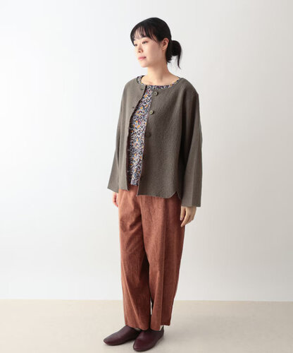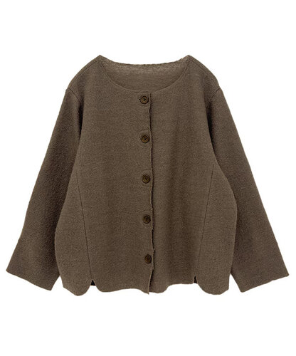 センター寄りに入れたカーブスリットが動きを感じさせるカーディガンは、プルオーバー感覚でさらっと羽織れる、頼れる一枚です。