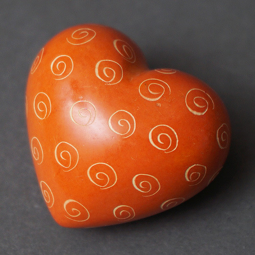 柔らかく加工しやすい石を削って作られた動物柄のハートです。
