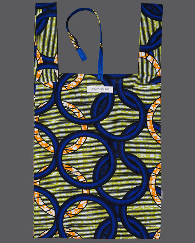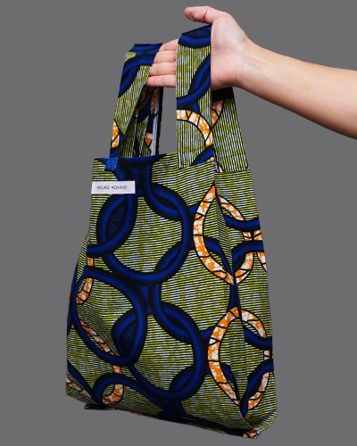 日本人デザイナー KIKUKO KOHNO が手がけた、シンプルなアフリカンワックスのエコバッグ。