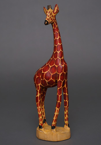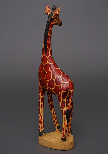 ケニアでつくられた、高さ約30cm前後の木彫りのキリンです。