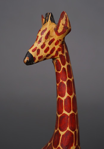 すらりと伸びた首と長い脚。サバンナを歩くキリンの姿を、職人が一本の木から丁寧に彫り上げ、彩色で仕上げています。