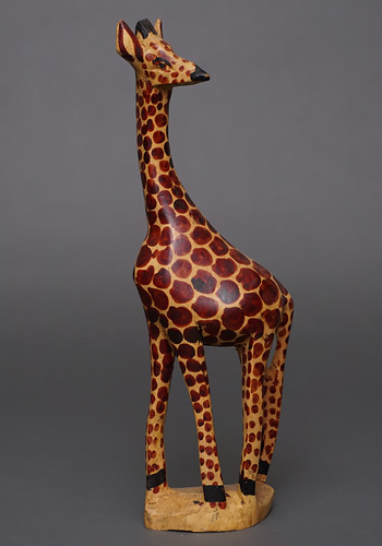 ケニアでつくられた、高さ約30cm前後の木彫りのキリンです。