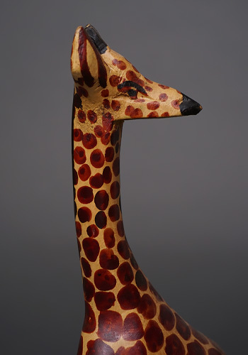 すらりと伸びた首と長い脚。サバンナを歩くキリンの姿を、職人が一本の木から丁寧に彫り上げ、彩色で仕上げています。