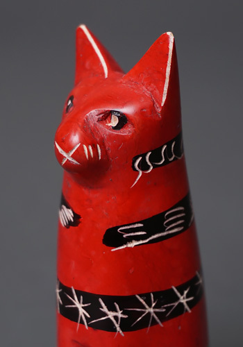 ケニア産ソープストーンを現地職人が手彫りしたMサイズの猫の置物です。