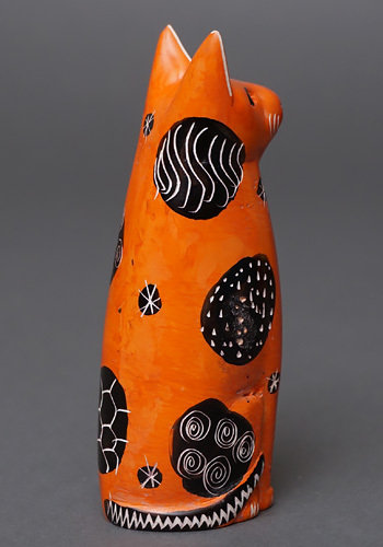 ケニア産ソープストーンを現地職人が手彫りしたMサイズの猫の置物です。