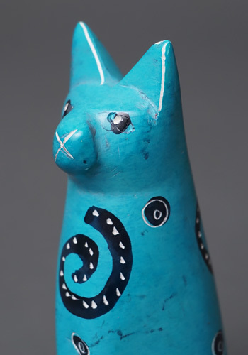 ケニア産ソープストーンを現地職人が手彫りしたMサイズの猫の置物です。