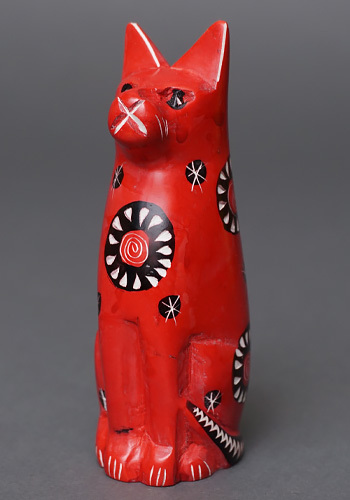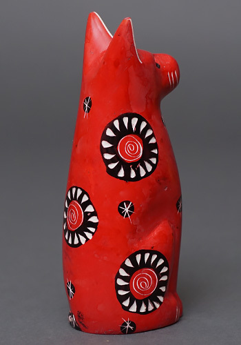 ケニア産ソープストーンを現地職人が手彫りしたMサイズの猫の置物です。