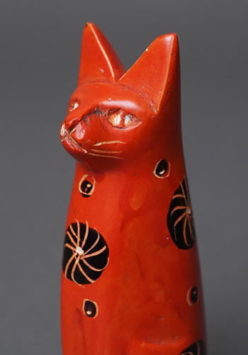 ケニア産ソープストーンを現地職人が手彫りしたMサイズの猫の置物です。