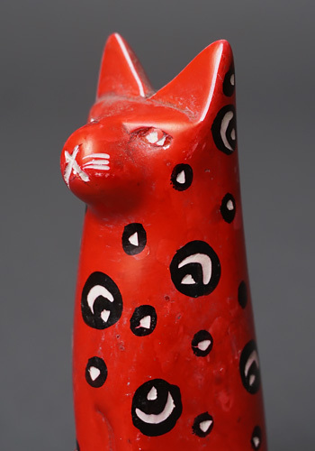 ケニア産ソープストーンを現地職人が手彫りしたMサイズの猫の置物です。