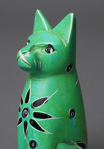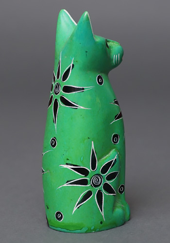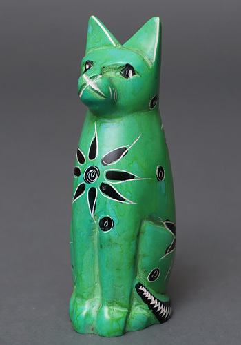 ケニア産ソープストーンを現地職人が手彫りしたMサイズの猫の置物です。