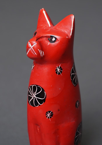 ケニア産ソープストーンを現地職人が手彫りしたMサイズの猫の置物です。