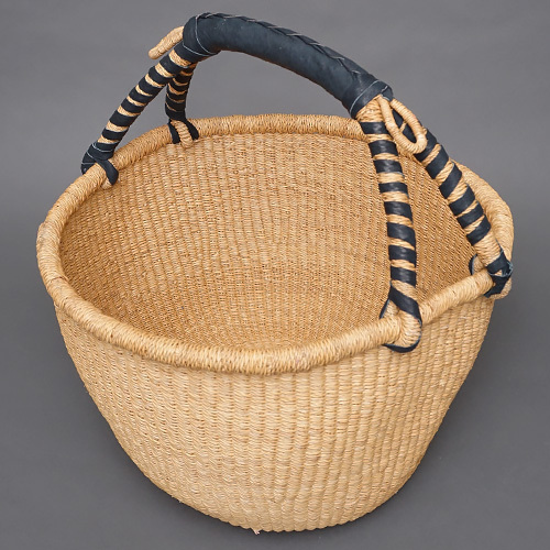 (ブルキナファソ) 半球マルシェバスケット ブラックレザー 無地 (L) No.18