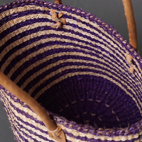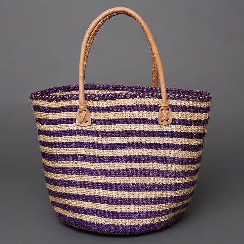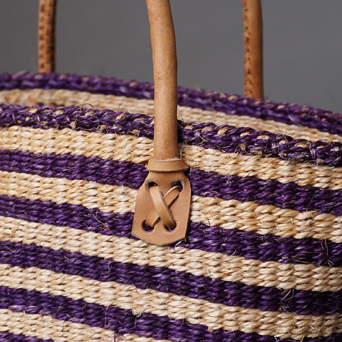 ケニア サイザルバッグ 8インチ ミックスカラー レザーショートハンドル No.1