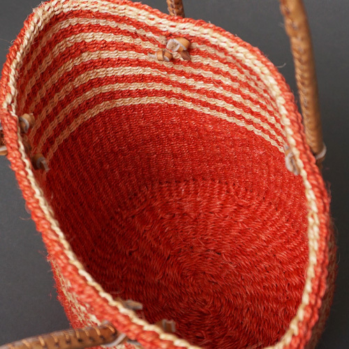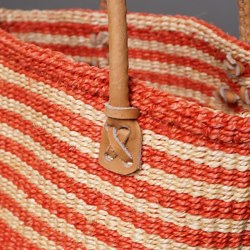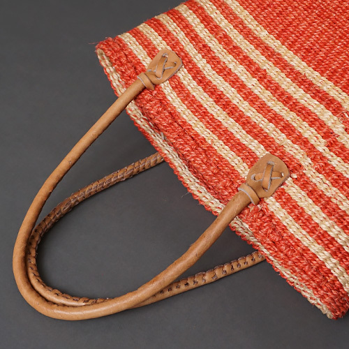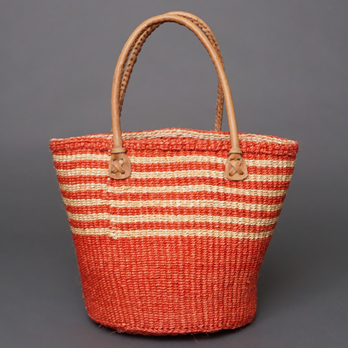 ケニア サイザルバッグ 8インチ ミックスカラー レザーショートハンドル No.3
