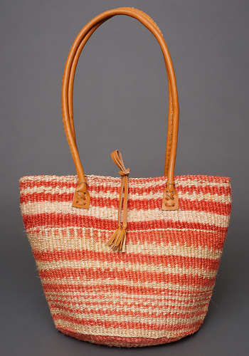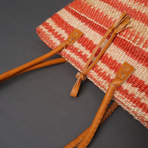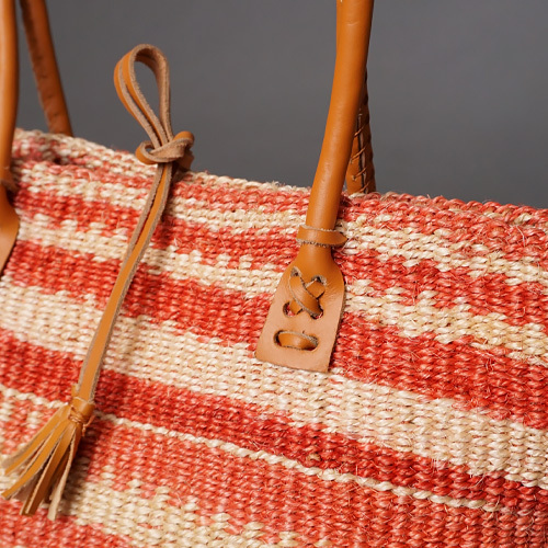 ケニア サイザルバッグ 10インチ レザーレース No.4