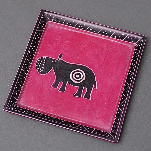 ケニアの職人がひとつひとつ手彫り・手描きで仕上げた、温かみのあるソープストーンの角皿です。