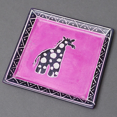 ケニアの職人がひとつひとつ手彫り・手描きで仕上げた、温かみのあるソープストーンの角皿です。