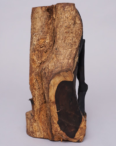 滑らかに磨き上げられた顔の造形と、あえて荒さを残した木肌の対比が、素材の生命力と職人の意図を同時に感じさせる一点物の作品です。