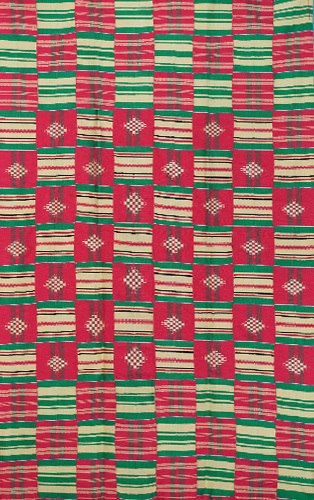 長い歴史を誇るこの布は、色鮮やかで精巧な幾何学模様が特徴で、それぞれの色と模様には深い意味が込められています。