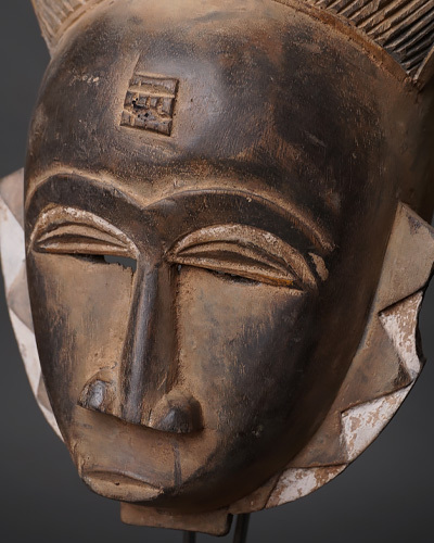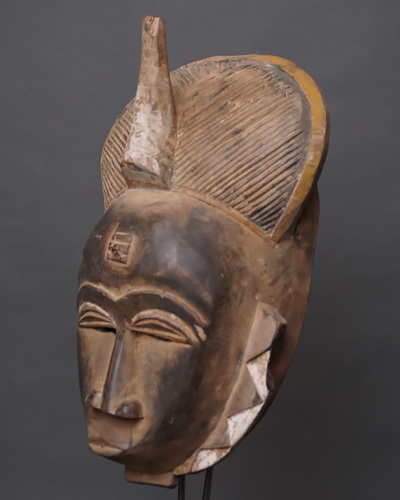 威圧感ではなく優美さを重んじるこの仮面は、バウレ族の美意識と精神性をよく映し出した作品です。