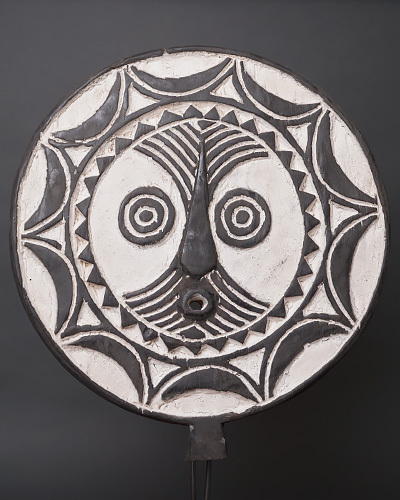 ブルキナファソのボボ族に伝わる円盤状の木製仮面です。