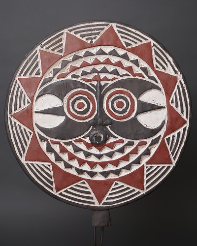 ブルキナファソのボボ族に伝わる円盤状の木製仮面です。