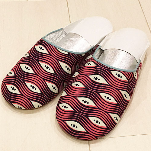 パーニュ布を使って作ったカラフルでかわいいモロッコスタイルのバブーシュです。