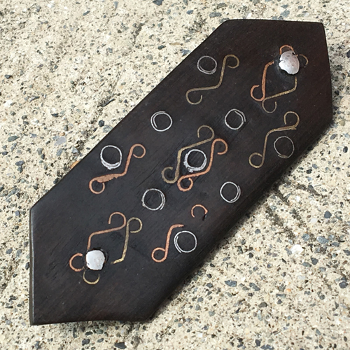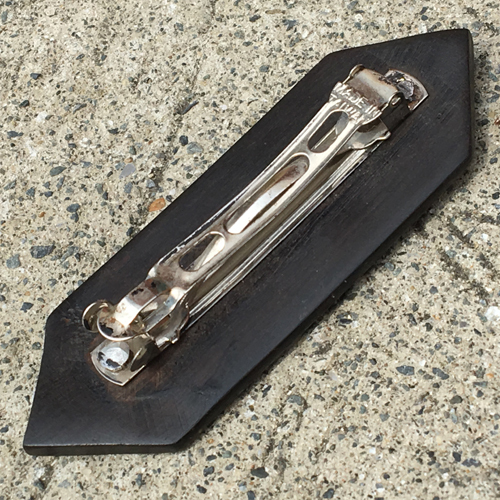 黒檀に真鍮、銅、アルミが埋め込まれた象嵌細工のバレッタです。
