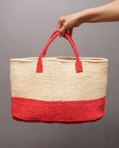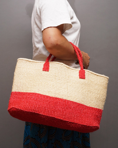 ケニア サイザル2トーンカラーバッグ ワイド (ホワイト,レッド)