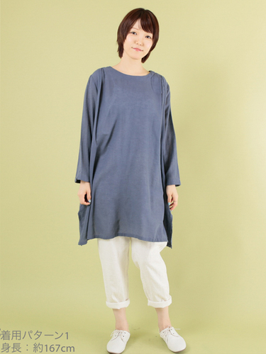 スラブコットンリネン 2Wayチュニック (ブルー)