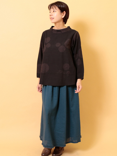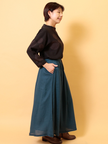 オーガニックコットンダブルガーゼ・スカート (ネイビー)