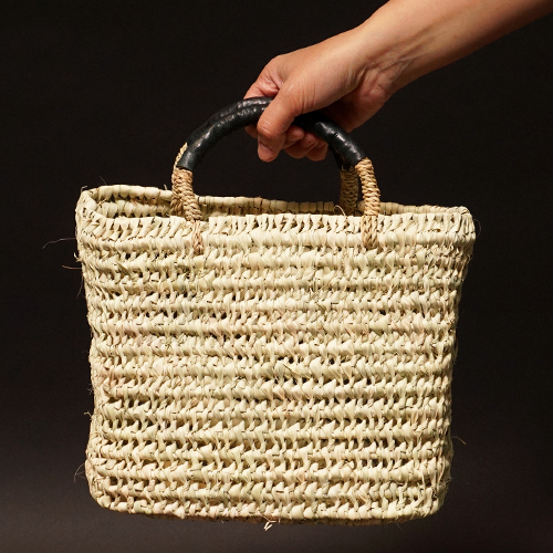 (モロッコ) 透かし編かごバッグ ブラックレザーハンドル (S)