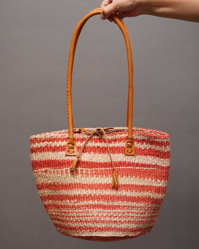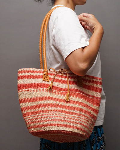ケニア サイザルバッグ 10インチ レザーレース No.8